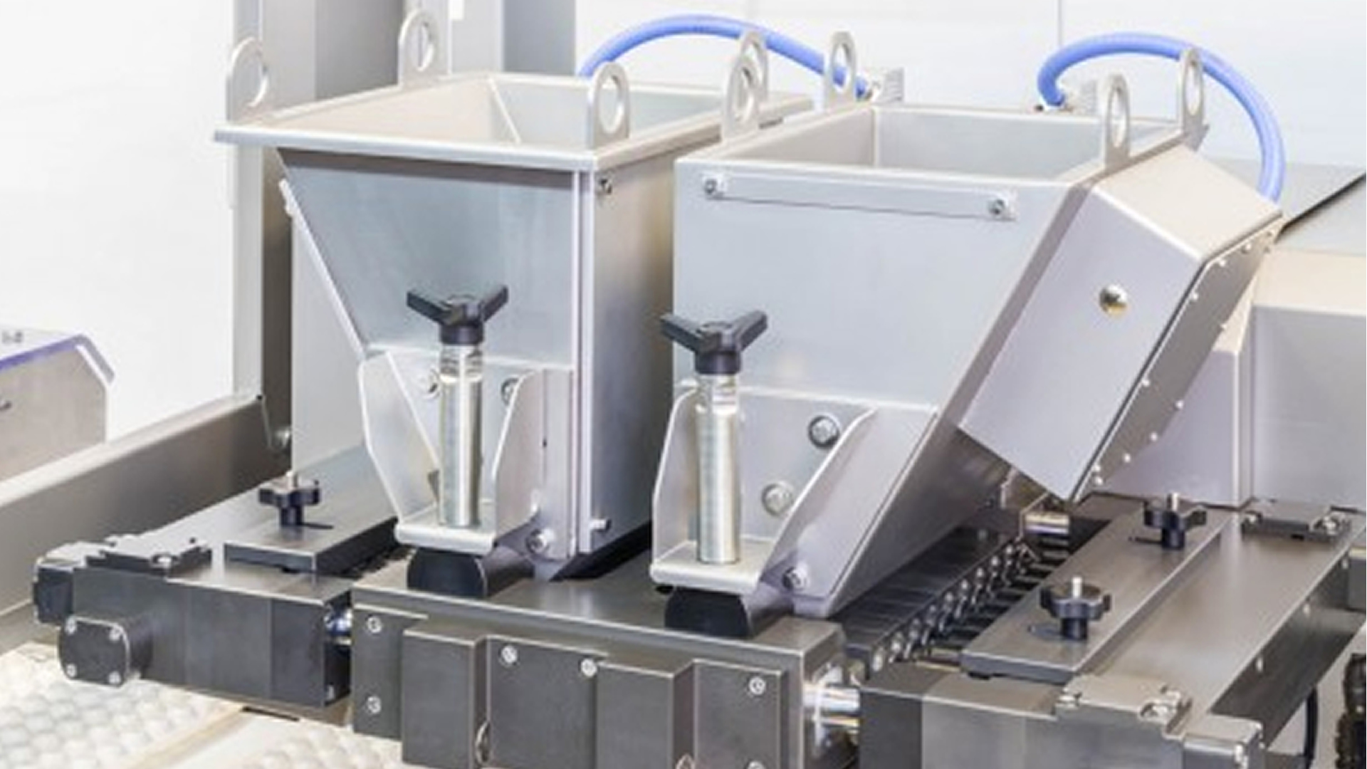 The dough prepared in the dough mixer is transferred to the jammer chamber by means of the belt.